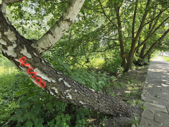 Jak policzył nasz czytelnik, pomarańczowym kolorem oznaczono ponad 200 drzew. Jak przyznał, bardzo go to zmartwiło. Takie oznaczenia zazwyczaj oznaczają planowaną wycinkę.