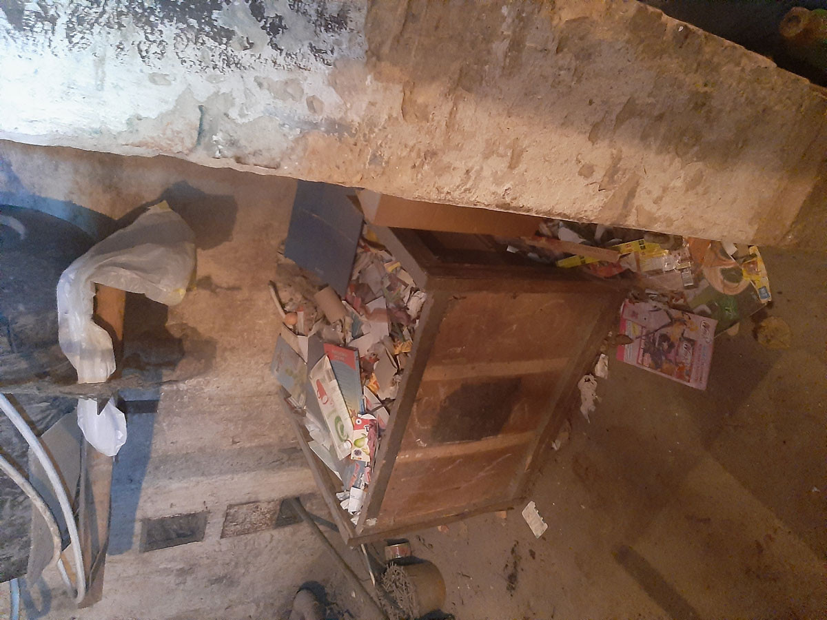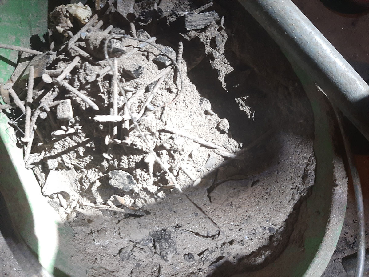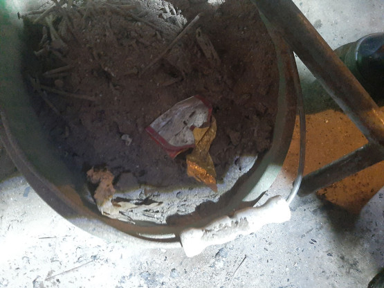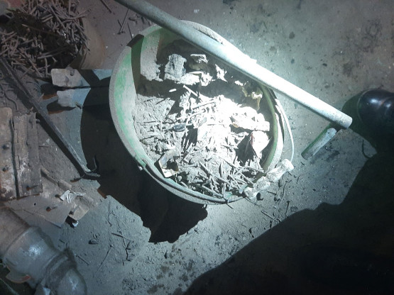 Po wczorajszej akcji i sprawdzeniu piwnicy, w której były przygotowane śmieci do spalenia, stało się jasne, gdzie trafiały odpady. Lądowaly one w piecu, o czym świadczyły chociażby resztki drutów, kabli i resztek drewnopodobnych elementów znalezione w palenisku i obok pieca. Regularne spalanie śmieci spowodowało nagromadzenie się sadzy w kominie, aż doszło do jej zapalenia.