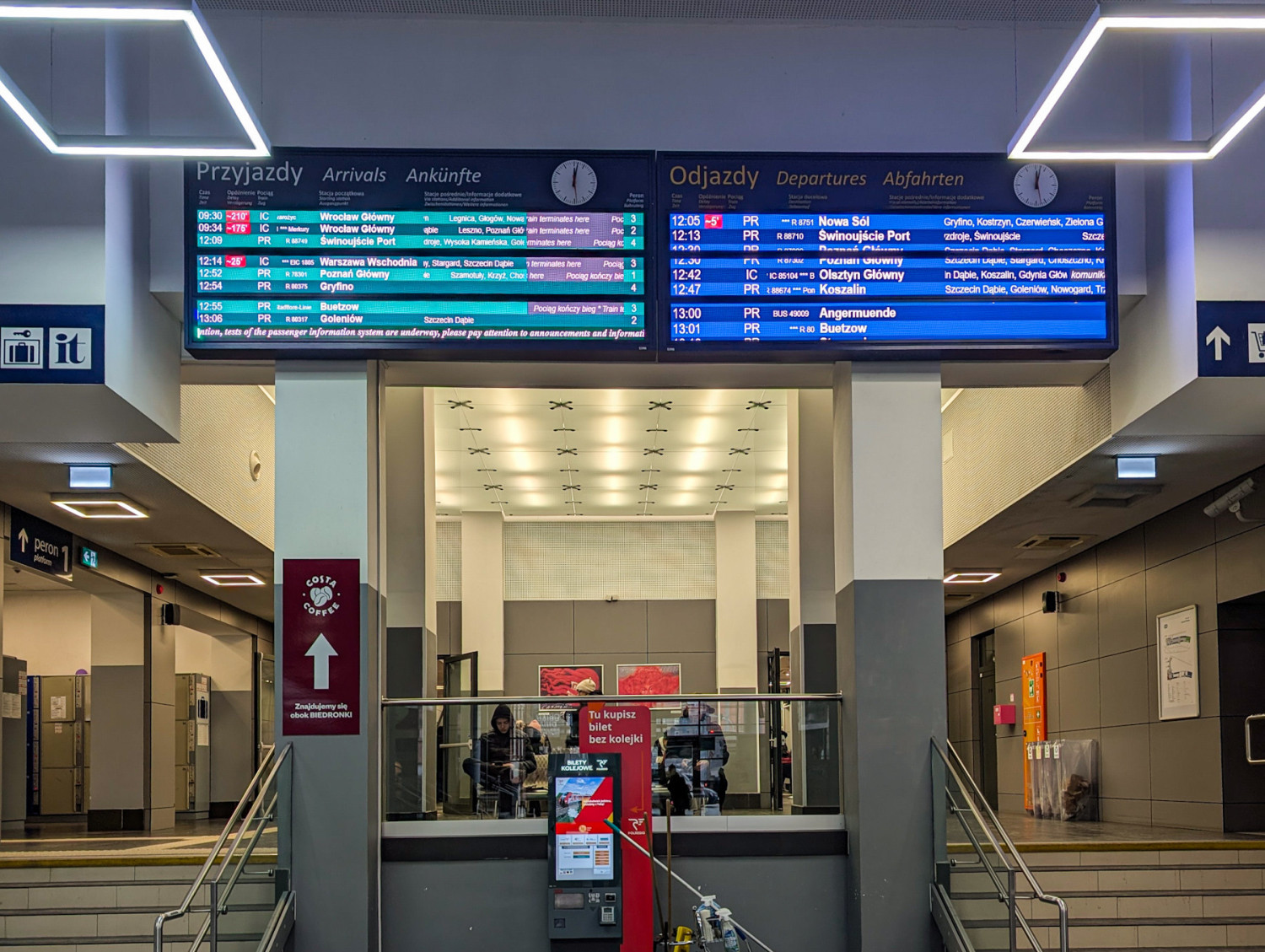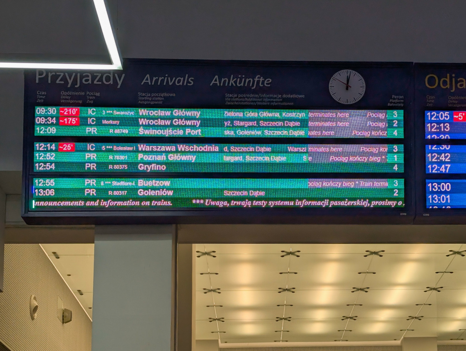 Po godzinie 12.00 opóźnienie pociągu IC Merkury z Wrocławia wynosiło 170 minut, a IC Swarożyc – aż 210 minut. Pociąg IC Bolesław Prus z Warszawy przyjechał z ponad 20-minutowym opóźnieniem. Ponad godzinne opóźnienie ma pociąg Intercity ze Świnoujścia do Przemyśla – tutaj jednak przyczyna jest zupełnie inna niż gołoledź i oblodzenie trakcji.