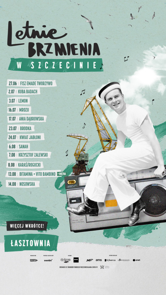 Przez całe tegoroczne lato na „Łasztowni - tu bije serce miasta” będą organizowane plenerowe koncerty w ramach Festiwalu Letnie Brzmienia. Wśród wykonawców, którzy pojawią się nad Odrą, znajdą się reprezentanci różnych gatunków muzycznych - od hip-hopu, przez elektronikę do folku i popu. To m.in.: Krzysztof Zalewski, promujący ubiegłoroczny album „Zabawa”, autorka hitu „Ale jazz!” - sanah, a także duet Kwiat Jabłoni, który niedawno wydał drugi album „Mogło być nic”. Poza tym publiczność zobaczy również występy m.in.: Nosowskiej, Bitaminy, Brodki, Ani Dąbrowskiej, duetu Karaś / Rogucki oraz Kuby Badacha śpiewającego utwory Andrzeja Zauchy.