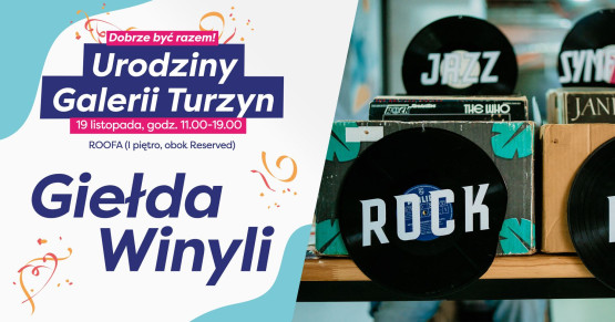 W sobotę w godz. 11:00-19:00 w Galerii Handlowej Turzyn odbędzie się Giełda Winyli. Jej współorganizatorem jest sklep 33’45’’ recordstore. Wydarzenie będzie miało miejsce w Strefie Roofa na pierwszym piętrze (obok salonu Reserved). Wstęp wolny. Szczegóły: https://www.facebook.com/events/809349240173571/