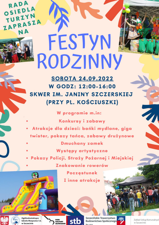 Rada Osiedla Turzyn w sobotę, 24 września, zaprasza na coroczny festyn rodzinny na zakończenie lata. Wydarzenie zaplanowano w godz. 12:00-16:00 na skwerze Janiny Szczerskiej, tuż przy pl. Kościuszki. W programie m.in.: konkursy, zabawy, dmuchany zamek, występy artystyczne, bańki mydlane, poczęstunek, pokazy policji, straży pożarnej i miejskiej. Wstęp wolny.