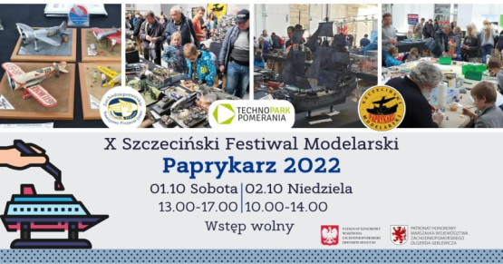 Po dwuletniej przerwie w ten weekend, 1 i 2 października, powróci Szczeciński Festiwal Modelarski „Paprykarz”, czyli największa w regionie impreza zrzeszająca miłośników modelarstwa! Jubileuszowa, 10. już edycja to nie tylko festiwalowa wystawa modeli, ale także moc atrakcji dla zwiedzających - m.in. pokaz kolejek elektrycznych i sprzętu wojskowego, giełda modelarska, warsztaty modelarskie dla najmłodszych, prezentacja grupy rekonstrukcyjnej. Wydarzenie odbędzie się w Technoparku Pomerania przy ul. Cyfrowej 2-8. Godziny otwarcia dla zwiedzających: sobota – 13:00-17:00, niedziela – 10:00-14:00. Wstęp wolny. Szczegóły: https://www.facebook.com/events/596328885464491