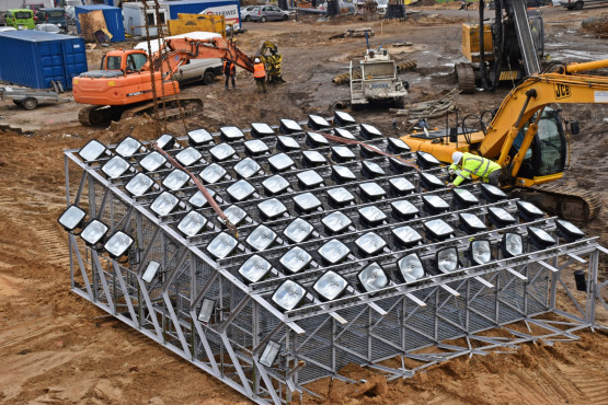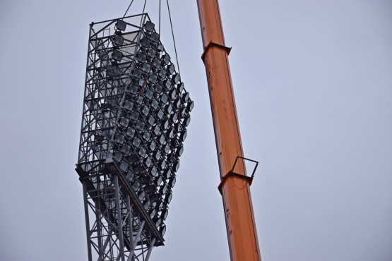 Na przebudowanym stadionie maszty nie będą już jednak potrzebne. Nowe oświetlenie zaprojektowano w ramach konstrukcji dachu. Dwa jupitery nad „wysoką” trybuną zlikwidowano rok temu. Teraz przyszedł czas na przebudowę trybuny „niskiej” i jej otoczenia.