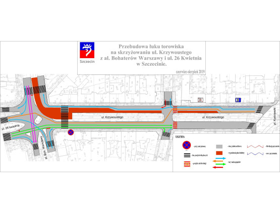 Na skrzyżowaniu ul. Krzywoustego z al. Bohaterów Warszawy i ul. 26 Kwietnia planuje się przełączenie sygnalizacji świetlnej na program żółtych świateł migających. W ciągu ul. Krzywoustego na kierunku Bohaterów Warszawy – Bolesława Śmiałego likwidacji ulegną miejsca postojowe ulokowane na jezdni, co umożliwi zachowanie dwóch pasów ruchu ogólnego w stronę pl. Kościuszki i wydzielenie jednego pasa ruchu w stronę ul. 26 Kwietnia. Czasowemu zamknięciu ulegną przejścia dla pieszych przez ul. Krzywoustego na skrzyżowaniu z ul. Bolesława Śmiałego.