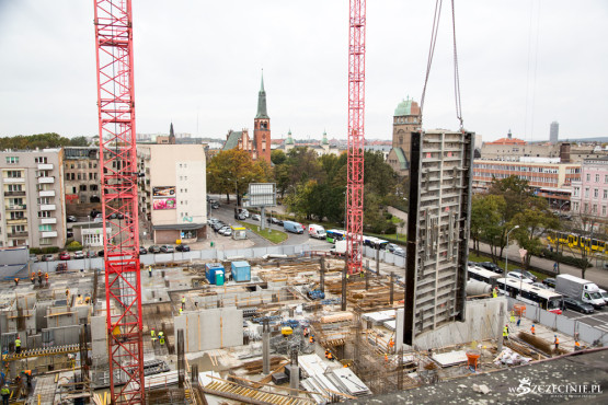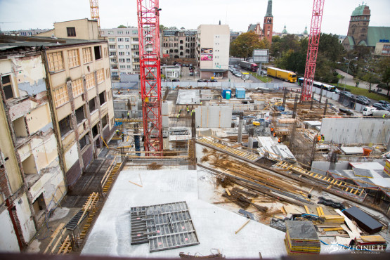Wykonawcą prac jest szczecińska firma Calbud. Nad budową góruje blisko 70-metrowy żuraw wieżowy. W nowej części kompleksu kończą się prace budowlane przy konstrukcji kondygnacji -1 i roboty stanu zero. Pracuje codziennie przy nich ok. 100 osób.