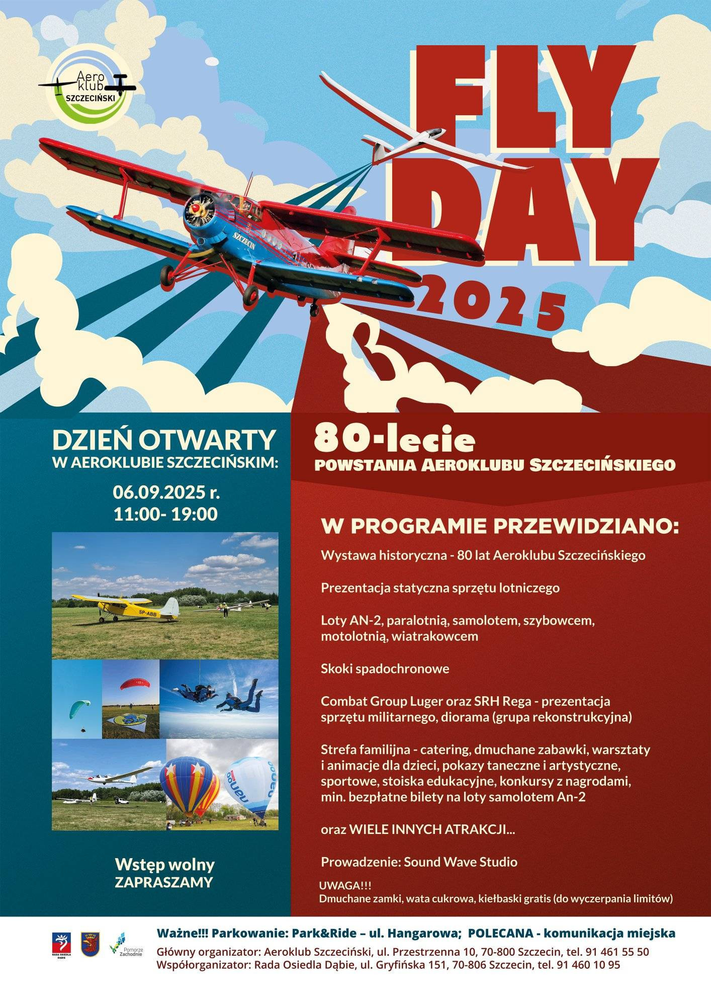 To wydarzenie zawsze przyciąga tłumy. W sobotę, 6 września, na lotnisku w Dąbiu odbędzie się piknik lotniczy Fly Day 2025. Na mieszkańców będą czekały samoloty, motolotnie i szybowce, pokaz spadochroniarzy, a nawet przeloty wybranymi maszynami. Będzie też mnóstwo atrakcji dodatkowych: wata cukrowa, animacje i warsztaty dla dzieci, pokazy, dmuchańce, kiełbaski z grilla. Wstęp wolny. Wydarzenie w godz. 11:00-19:00.