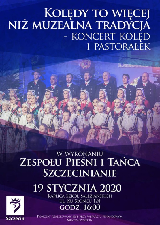 Zespół Pieśni i Tańca Szczecinianie w niedzielę, 19 stycznia, zaprasza na koncert kolęd i pastorałek pod tytułem: „Kolędy to więcej niż muzealna tradycja”. Koncert odbędzie się w kaplicy Szkół Salezjańskich przy ul. Ku Słońcu 124. Początek o godzinie 16:00. Wstęp wolny.