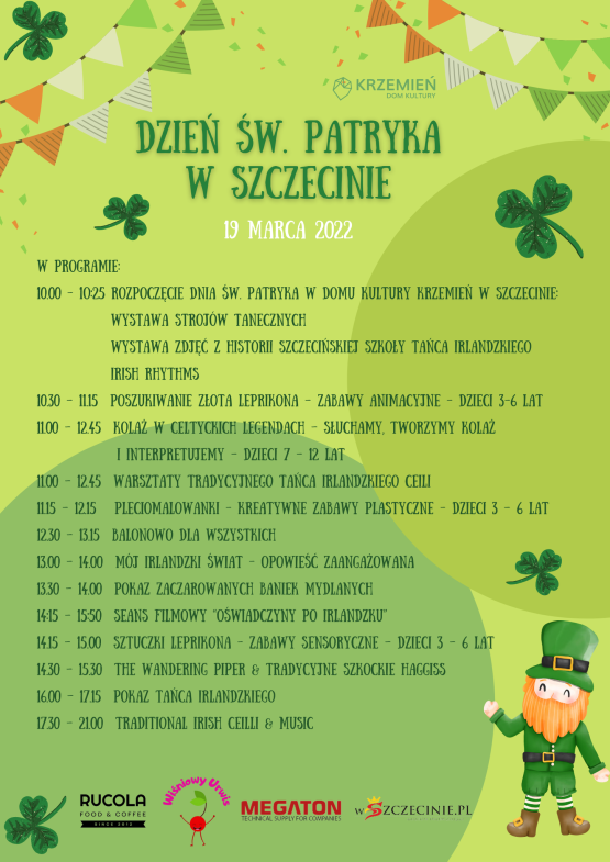DK Krzemień przy ul. Krzemiennej 10 w sobotę, 19 marca, zaprasza do wspólnego świętowania Dnia św. Patryka. Zaplanowano cały dzień atrakcji w irlandzkim stylu. W programie m.in.: wystawy, prelekcje, spotkania, pokazy „zaczarowanych” baniek mydlanych, celtyckie legendy dla dzieci, degustacje specjałów, występ dudziarza, pokazy tańca irlandzkiego, zabawy animacyjne i sensoryczne dla dzieci, warsztaty. Atrakcje będą czekały na odwiedzających w godz. 10:00-21:00. Wstęp bezpłatny, obowiązują darmowe wejściówki, które można odbierać w recepcji DK Krzemień od poniedziałku do piątku w godz. 16:00-20:00. Szczegóły: https://www.facebook.com/events/353412853124891/