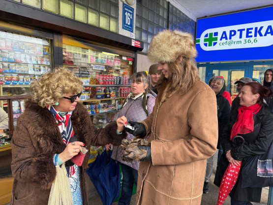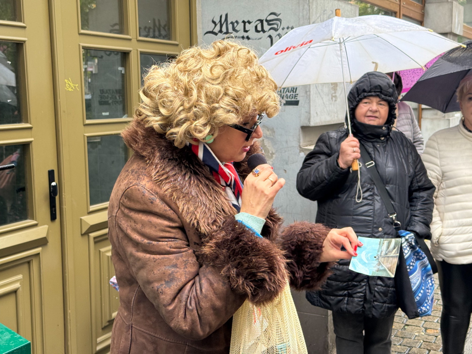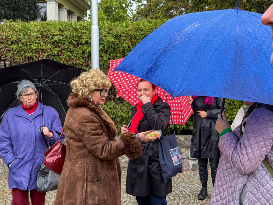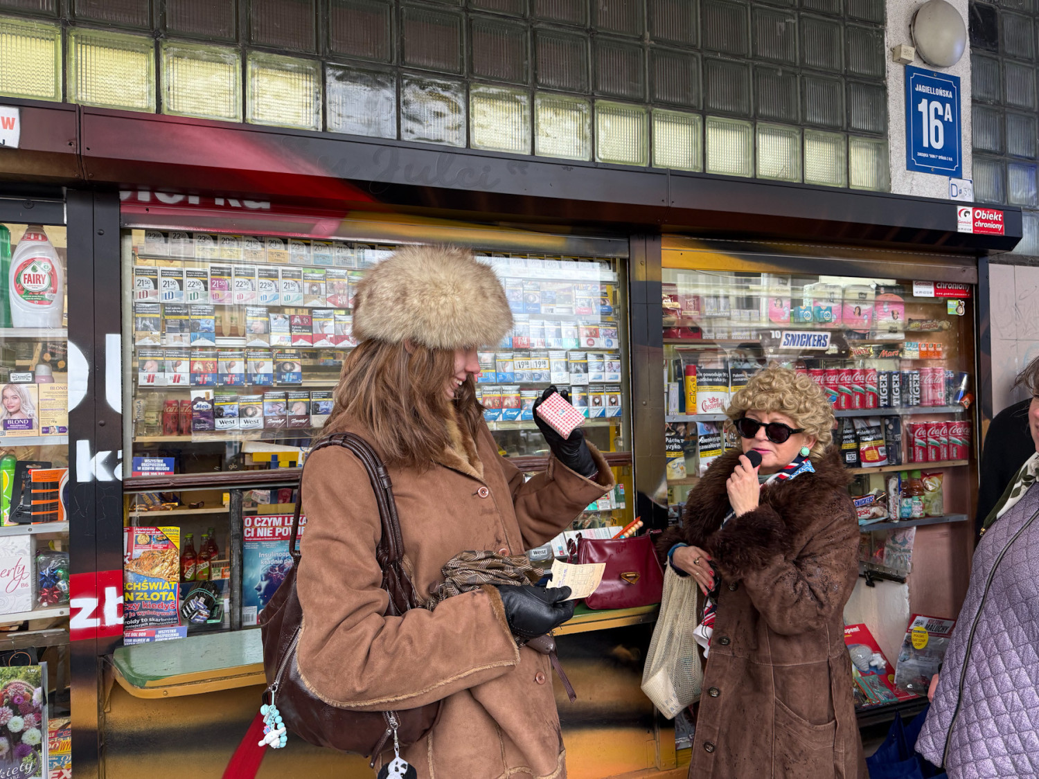 – Dzień dobry, już spieszę z landrynką. Proszę się częstować – wita wesoło Justyna Machnik, która częstuje uczestników twardymi cukierkami. Odziana w futro, z zielonymi klipsami i wałkami we włosach, założycielka Muzeum Szczecin w PRL jest naszą przewodniczką.