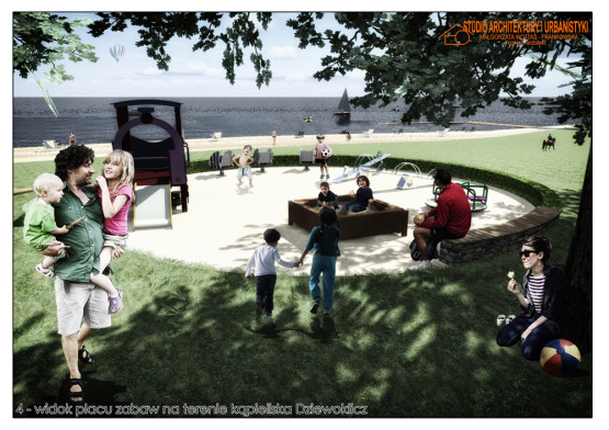 Przy plaży na Dziewokliczu mają powstać: boiska (do siatkówki plażowej i piłki nożnej), place zabaw dla młodszych i starszych dzieci, siłownia plenerowa, pole kempingowe, pole namiotowe z zapleczem sanitarno-gospodarczym, plac z pawilonami sanitarnymi, socjalnymi i gastronomicznymi, pole z miejscami na ognisko i zadaszonymi stołami piknikowymi oraz promenada wzdłuż nabrzeża od strony kanału Odyńca, z ławkami i stołami do gier. Centralnym miejscem ma być skrzyżowanie alejek z trejażem i siedziskami. W przyszłości, w kolejnym etapie, planowana jest budowa trzech pomostów pływających wraz z przystanią dla jednostek pływających.