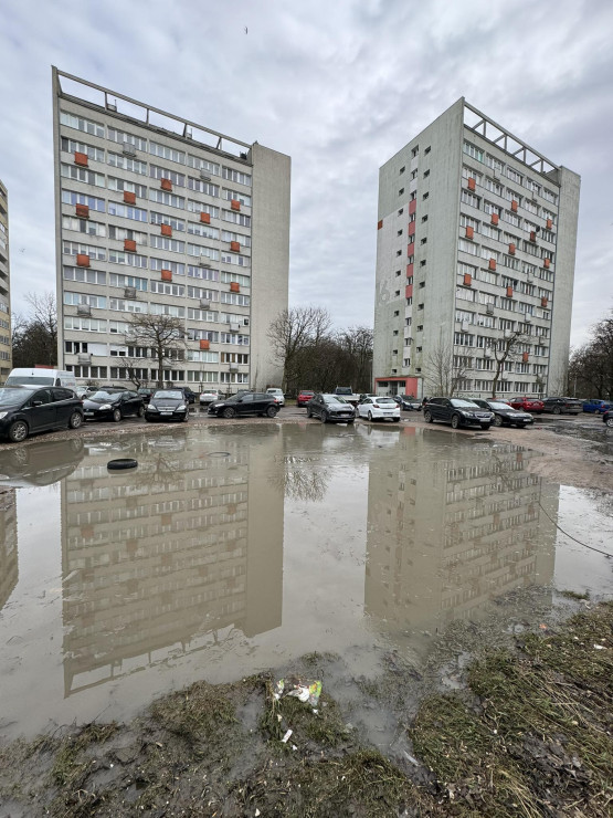 Chodzi o teren między blokami z wielkiej płyty przy ulicy Malczewskiego oraz CHR Galaxy. Jak relacjonuje Przemysław Słowik, „nawierzchnia bardziej przypomina powierzchnię księżyca”. Co więcej, przy mocnych opadach deszczu teren jest zalewany, powstaje sporych rozmiarów kałuża, po której pływają kaczki.