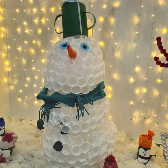 - Przedszkole i Żłobek Słoneczny Sad, Dołuje - Bałwanek z kubków plastikowych