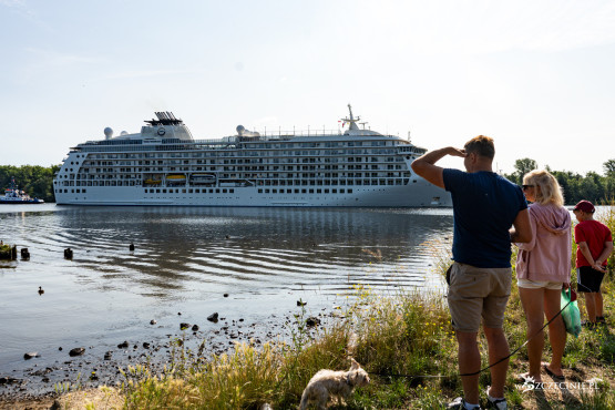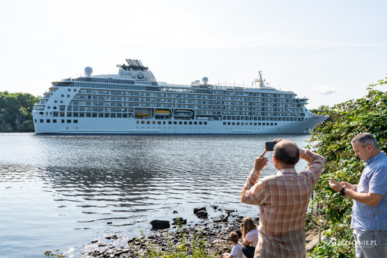 „The World” około godziny 9 pojawił się na wysokości Gocławia i Golęcina. To właśnie z nabrzeży w północnej części miasta można było zrobić najlepsze zdjęcia wpływającego do portu statku. Nie brakowało mieszkańców, którzy skwapliwie z tego skorzystali. Pełnomorski wycieczkowiec to bowiem w Szczecinie rzadkość, gościmy tutaj raczej tylko dużo mniejsze rzeczne cruisery.