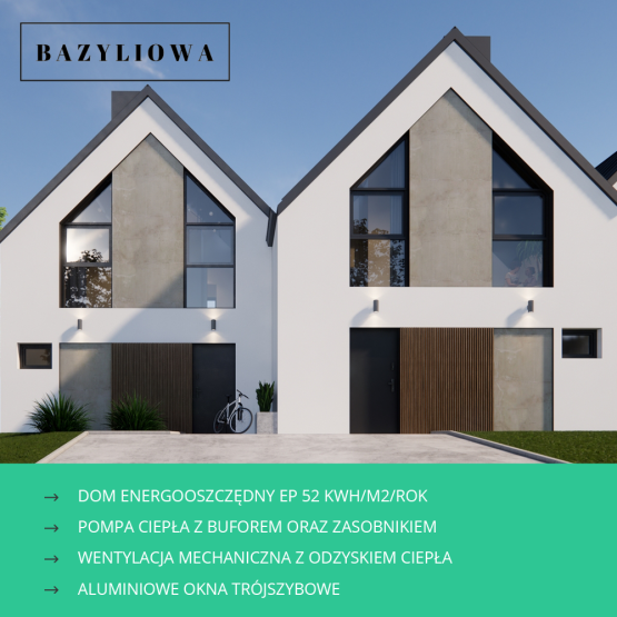 W przypadku domów przy ul. Bazyliowej ten problem znika. Poza podjazdem na samochód, przyszli mieszkańcy będą mieli do dyspozycji taras i ogród. Każdy dom składa się z dwóch kondygnacji – parteru i poddasza użytkowego. Jest miejsce na salon z kuchnią, trzy sypialnie i dwie łazienki.