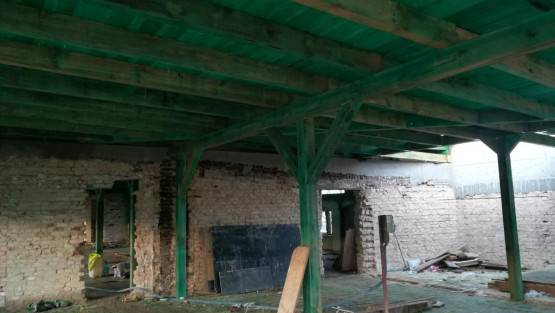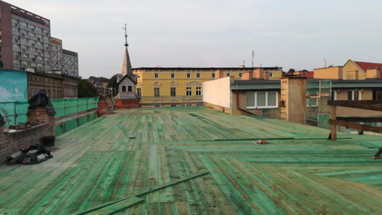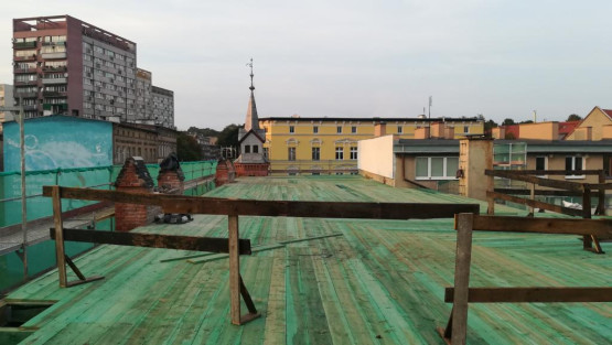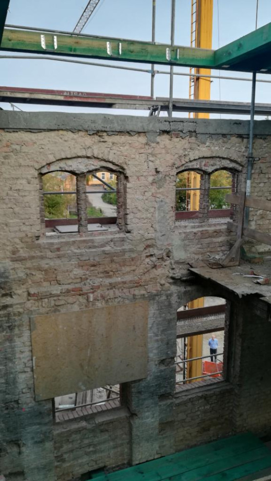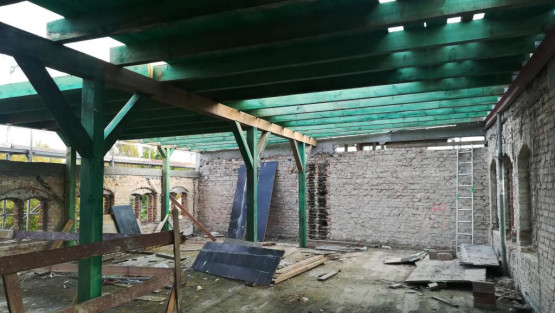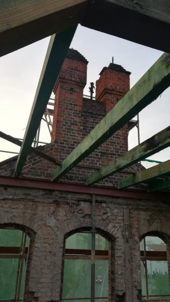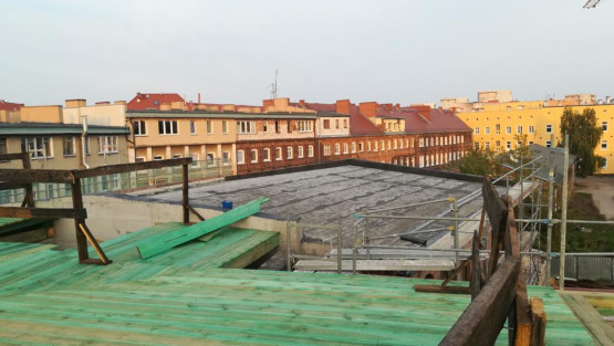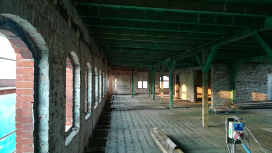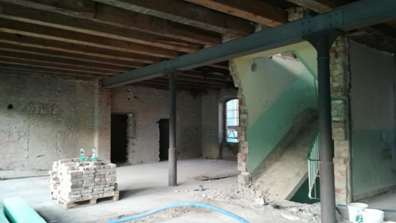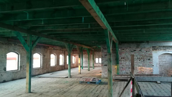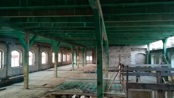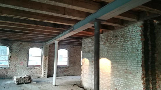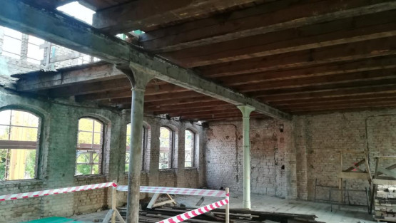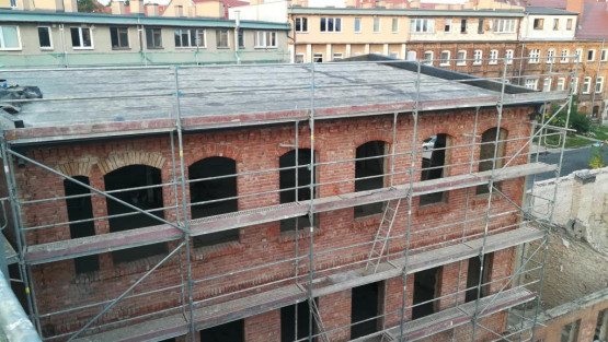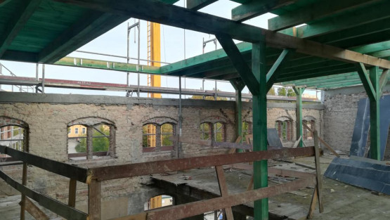 Jak informują przedstawiciele dewelopera 90% dachu części głównej budynku zostało już pokryte deskami, rozpoczęto montaż rynien i pokrywanie dachu papą. Zakończono prace nad rozbiórką dachu w części przeznaczonej do rozbudowy. Rozpoczęto prace związane z: renowacją i uzupełnieniem drewnianych stropów, przygotowaniem otworów okiennych do montażu stolarki okiennej, czyszczeniem podciągów drewnianych i stalowych, pogłębieniem przyziemia budynku. Cały czas trwa renowacja elewacji.