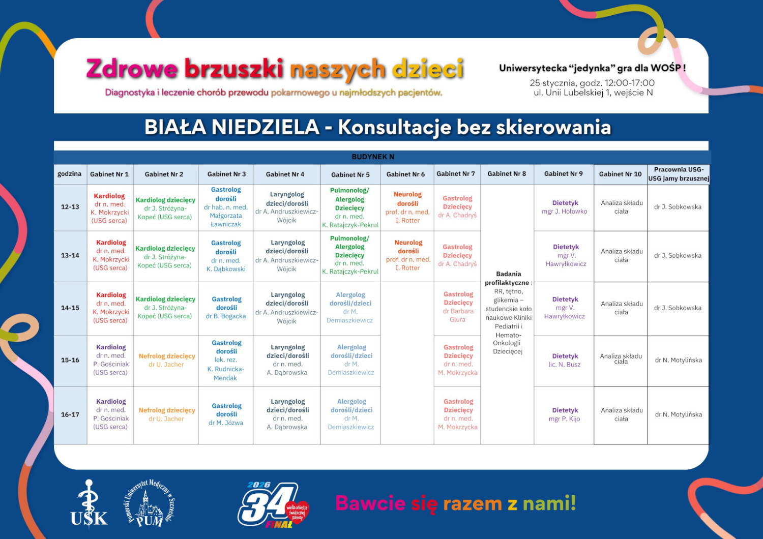 W tegoroczne obchody aktywnie włącza się zespół Kliniki, Pediatrii, Żywienia i Gastroenterologii Dziecięcej USK-1 PUM w Szczecinie. Na terenie szpitala przy ul. Unii Lubelskiej (wejście M, N i O) w godz. 12:00-17:00 medycy zaplanowali szereg atrakcji dla dzieci, młodzieży i dorosłych.
