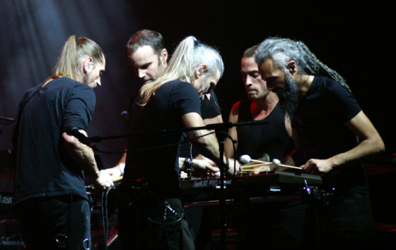 Zanim jednak szkocki gigant zawładnął sceną, publiczność, która przyszła by go zobaczyć, otrzymała francuską przystawkę. Pięciu muzyków tworzących formację Lazuli przez trzy kwadranse aplikowało nam swe kompozycje mieszczące się w progresywnej stylistyce, a zatem kompatybilne z dokonaniami Fisha, który zreszta gościnnie wystąpił na ich ostatniej płycie. Formacja została założona przez braci Dominique (wokal, gitara) i Claude`a Leonetti, który obecnie gra na ‘leode’, (po wypadku motocyklowym muzyk ma niesprawne lewe ramię i dlatego zaprojektował sobie specjalny instrument).Francuzi pierwszy raz grają w Polsce, a szczecinianom spodobali się, zaskoczywszy widzów szczególnie finałem całego występu. Wówczas wszyscy muzycy chwycili za pałeczki i zagrali na wibrafonie.