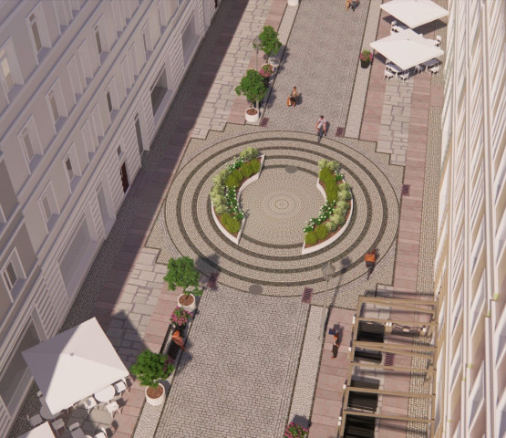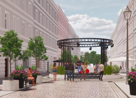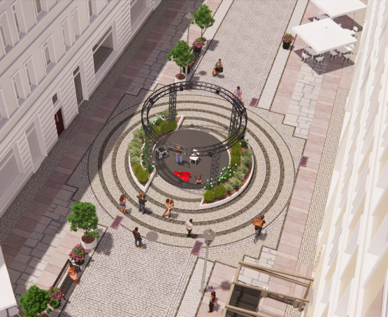 Jak czytamy: „swym designem nawiązują do niedawno wybudowanej fontanny na placu Zamenhofa”. Scena na samym środku deptaku ma pozwolić „na większą swobodę w organizacji wydarzeń”.