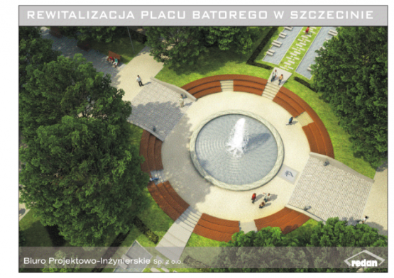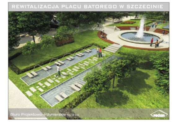 Wartościowymi elementami placu jest roślinność w tym historyczne platany oraz dwie historyczne pierzeje budynków. Projekt nawiązuje do historycznego układu kompozycyjnego. Centralnym elementem placu będzie fontanna na planie koła z wysokim strumieniem wodnym. Proponuje się wykonanie zabiegu architektonicznego polegającego na niewielkim obniżeniu poziomu terenu placu wokół fontanny z umieszczeniem siedzisk w układzie amfiteatralnym, również na planie koła. Zgodnie z dokumentacją na pl. Batorego pojawią się także nowe elementy tematyczne place zabaw i ławeczki. Przewiduje się przebudowę nawierzchni alejek oraz oświetlenie terenu i iluminację wybranych obiektów. - mówi Tomasz Klek z Urzędu Miasta.