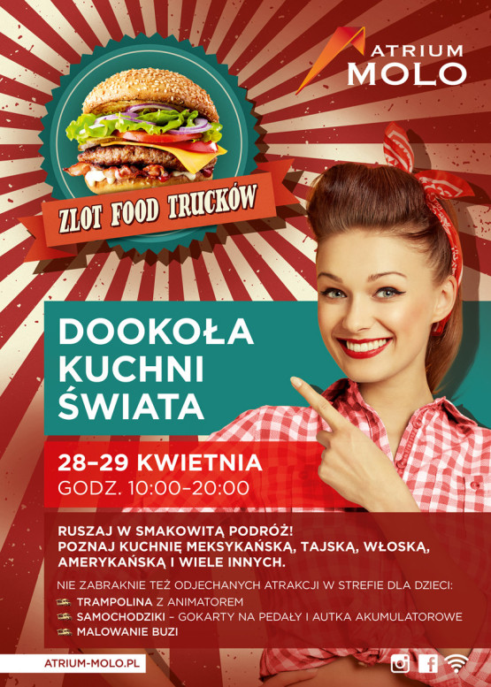 Zlot food trucków odbędzie się w dniach 28-29 kwietnia, w godzinach 10:00 – 20:00, przy Atrium Molo. Więcej informacji na temat wydarzenia można znaleźć na stronie internetowej szczecińskiego centrum: www.atrium-molo.pl i Facebooku.