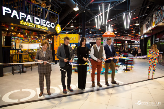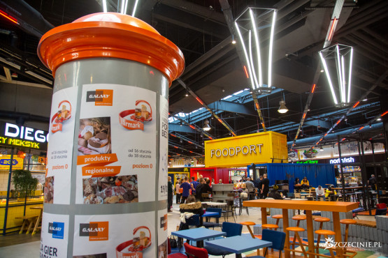 Nowa strefa food court w Galaxy robi wrażenie. W przeciwieństwie do białych wnętrz galerii, utrzymana jest w ciemniejszym, portowym klimacie. Przestrzeń budują naturalne materiały, elementy stalowe, pojawiły się również kontenery. Nad lokalami gastronomicznymi umieszczono graffiti z motywami szczecińskimi, wykonane przez streetartowca „Kraza” – Marcina Papisa. Artysta stworzył swoje dzieła, inspirując się charakterem funkcjonujących w Galaxy lokali, ale i symbolami naszego miasta. Poszczególne cześci FoodPortu również odwołują się do historii Szczecina, nie brakuje tu dźwigozaurów, "Grzybka" czy "Pasztecika". Najpoważniejsza zmiana to zwiększenie liczby miejsc siedzących z 350 do 600.