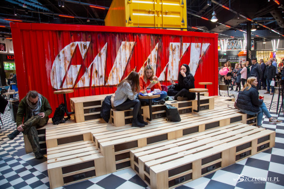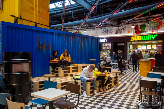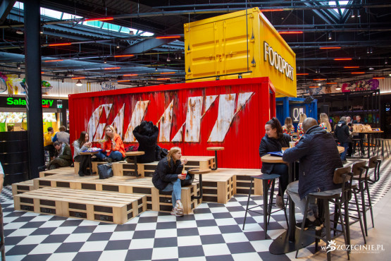 Nowa przestrzeń gastronomiczna w Galaxy zaprojektowana została przez architektów Grupy EPP, do której należy szczecińskie centrum, we współpracy z pracownią MIXD. Nowości to boisko do gry w koszykówkę, kilka kontenerów, w których można usiąść i zjeść posiłek oraz ławki i stoliki z europalet. Nowa aranżacja ma przyciągać młodych ludzi.