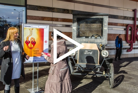 Replika Forda T z 1914 r. stanęła w niedzielę pod Galerią Kaskada, by promować najnowszy spektakl Opery na Zamku "Napój miłosny".
