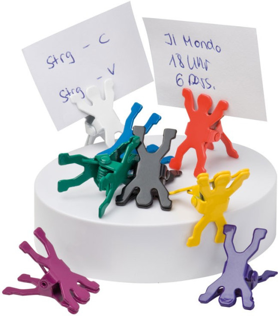 Magnetyczny stojak z klipsami na notatki w formie kolorowych ludzików