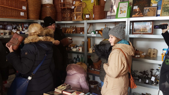 Na wszystkich odwiedzających czekała niespodzianka. Wbrew wcześniejszym zapowiedziom Galeria zajęła nie jedno, ale aż trzy duże pomieszczenia. W pierwszym znajdują się zabawki, encyklopedie, płyty winylowe, niewielkie wyposażenie wnętrz itp. W drugim znajdziemy meble, m.in.: komody, szafki, krzesła, fotele. Z kolei największe pomieszczenie wypełniły rowery dla dzieci, narty, buty narciarskie, deski snowboardowe, kije golfowe i wiele innych.