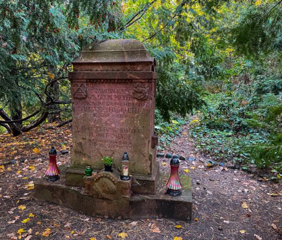 Pomnik Wilhelma Mayer-Schwartau był kilkukrotnie przenoszony. Obecnie znajduje się w pasie zieleni nad kwaterą 44.