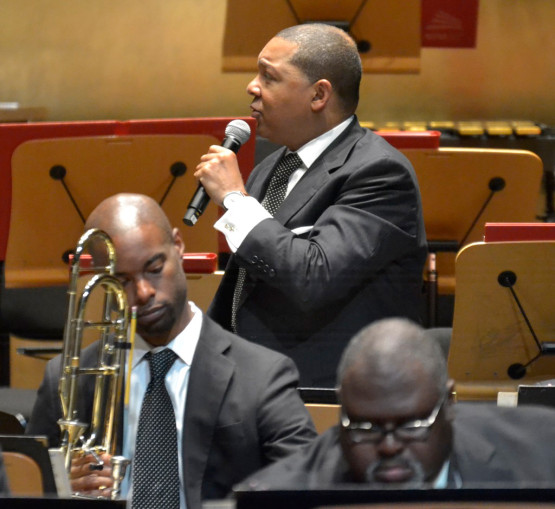 W czwartek w Filharmonii pojawił się na scenie wraz z renomowaną amerykańską orkiestrą Jazz at the Lincoln Center. Grają w niej tacy instrumentaliści jak Kenny Rampton – trąbka, Chris Crenshaw – puzon, Victor Goines - klarnet czy Carlos Henriquez – kontrabas, a lider wcale nie wybrał miejsca na przedzie, ale usiadł za swoim pulpitem w środku, utrudniając pracę fotografom... Muzycy przedstawili około 40 minutową „lekcję swingu”. Wynton zapowiadał standardy z dorobku Duke`a Ellingtona, dodając kilka anegdot, a muzyka która brzmiała ze sceny to była wyśmienita, soczysta ilustracja jego słów. Chociażby utwór „Big House Blues”, zagrany pod koniec, skrzący się od emocji, które udzieliły się też publiczności.