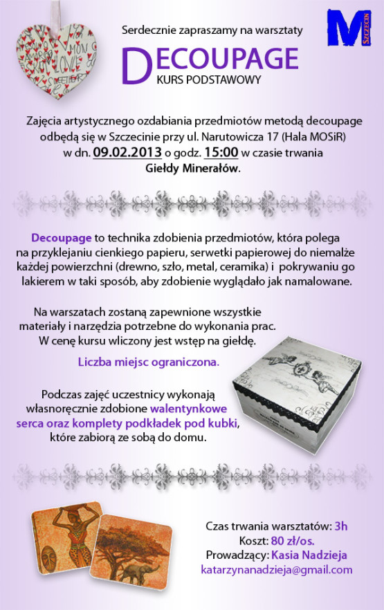 Dla kreatywnych zostały również przygotowane warsztaty. Począwszy od tworzenia biżuterii ręcznie wyplatanej, poprzez bransoletki szydełkowo-koralikowe, wire-wrapping, sutasz, skończywszy na decoupage’u .