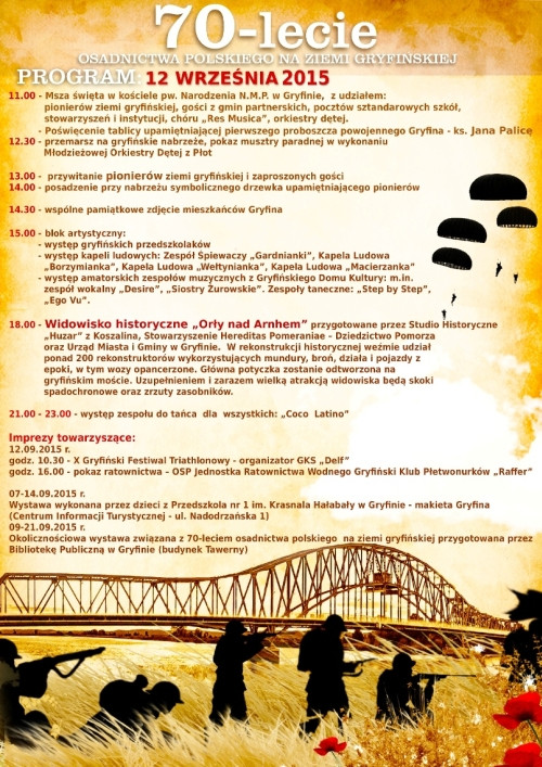 Sobotnie widowisko będzie głównym punktem obchodów 70-lecia Osadnictwa Polskiego na Ziemi Gryfińskiej. Oprócz inscenizacji zaplanowano także występy artystyczne, pokaz musztry paradnej, okolicznościowe wystawy. Szczegóły na www.gdk.com.pl