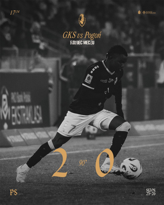 Sobotni mecz rozpoczął się od szybko zdobytej bramki przez gospodarzy, który ustawił przebieg spotkania. Strzałem głową piłkę w siatce umieścił Adam Zrelak. Jeszcze przed przerwą wynik dla GKS-u podwyższył Bartosz Nowak.
