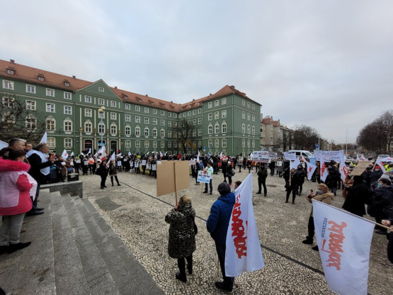 – Dostaliśmy informację, że wyrównanie do minimalnej krajowej wymaga przeznaczenia z budżetu miasta ponad 7 milionów złotych. Każdy może sobie przeliczyć, że w sferze budżetowej Szczecina na najniższej krajowej jest ponad 2,5 tysiąca pracowników. Jeszcze kilka lat temu tych pracowników było maksymalnie 12-13 osób. Widać jak przez kilka lat spłaszczyły się płace, nie dbając o pracowników doprowadzono ich do takiego stanu – mówi Mieczysław Jurek, przewodniczący NSZZ Solidarność. – Zaproponowano nam w pierwszym roku 200 złotych, w drugim 150 złotych, a w trzecim zero, bo nic nie można przewidzieć. Odpowiadamy stanowczo: nie my rządzimy budżetem miasta, robią to władze. Nie zgadzamy się, że im dłuższa kadencja, tym grubsza skóra i mniej empatii. Nie ma takiej zgody panie prezydencie – grzmiał przewodniczący Jurek, zaznaczając jednocześnie: – Nasz postulat to 1000 złotych brutto na etat.