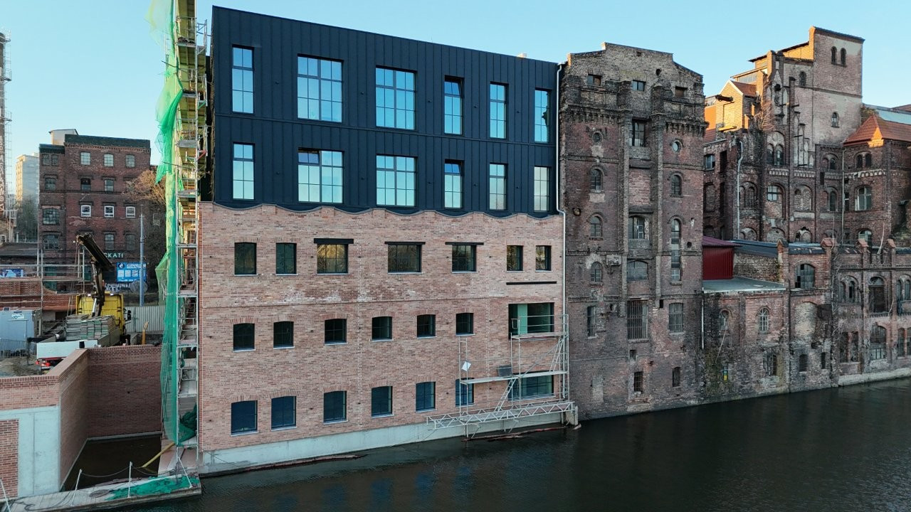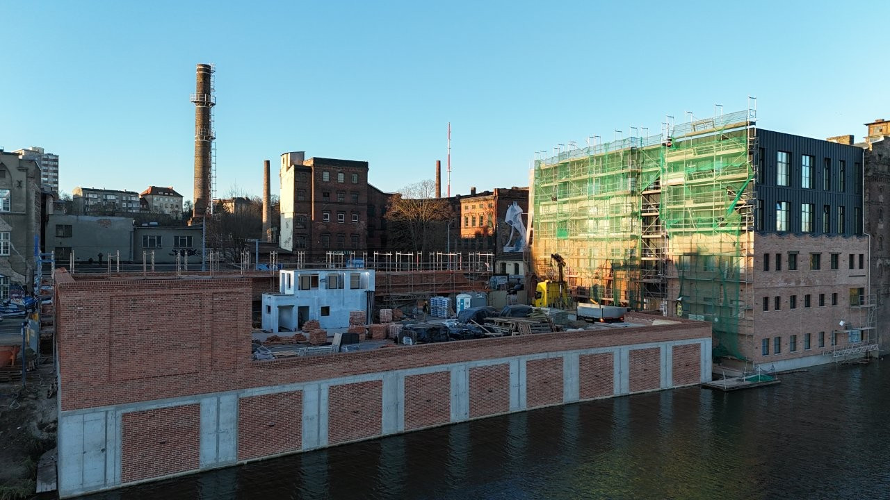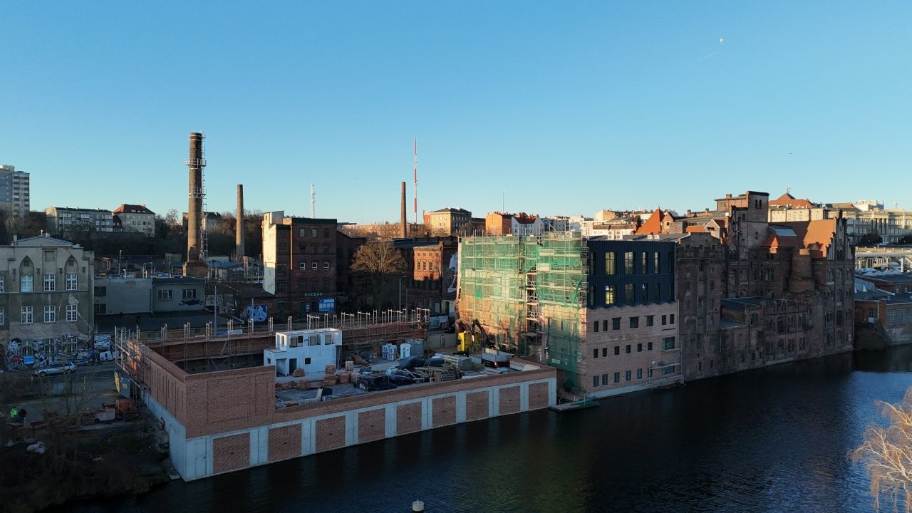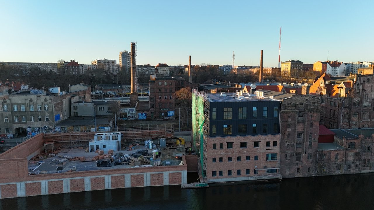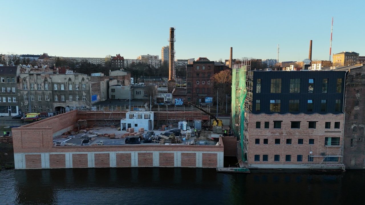 Jak słyszymy, elewacja będzie podświetlana od strony Odry. Odzyskana cegła pochodzi z elewacji frontowej oraz fragmentu części południowej. Przypomnijmy, że rozbiórka jednego z budynków po dawnej wytwórni alkoholu i drożdży C. Lefevre’a była konieczna ze względu na katastrofalny stan. Z historycznej zabudowy pozostała tylko część muru otaczającego dziedziniec oraz ściana parteru od strony ulicy.