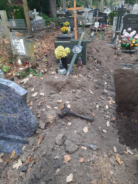 – Pojechałam na cmentarz na grób taty, bo we Wszystkich Świętych to nie było możliwe. Nasz grób był przysypany ziemią z grobu obok. Resztki trumny, kość, jakieś fragmenty ubrań. Przysypane były grób mojego taty oraz grób z przodu – relacjonuje mieszkanka Szczecina. – To się powinno odbyć w jakiś cywilizowany sposób. Ja nie miałam gdzie świeczki i kwiatka postawić. Szokująca sytuacja, bardzo przykra, chciałabym zostać przeproszona, że zrobiono coś takiego – dodaje.