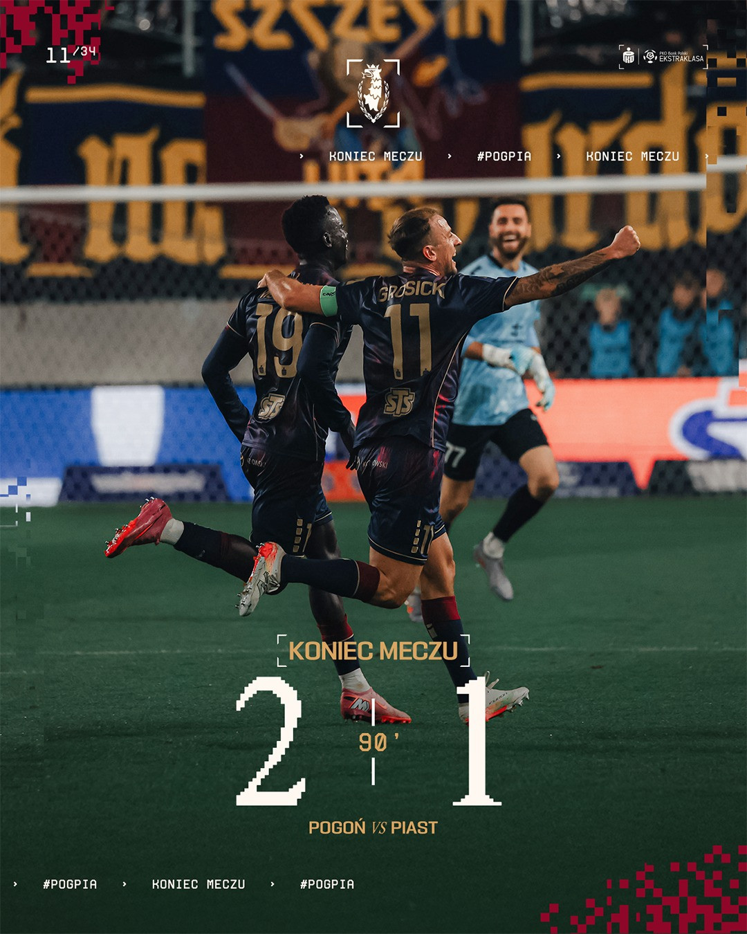 Bramki dla Pogoni Szczecin zdobywali amor NDiaye i Kamil Grosicki. Dla Piasta Gliwice trafienie zdobył German Barkovskiy. Po komplecie punktów w piątkowym meczu - Portowcy znaleźli się w górnej części tabeli PKO BP Ekstraklasy. Następny mecz Dumy Pomorza to wyjazdowe starcie z Lechem Poznań. Mecz z Kolejorzem odbędzie się po przerwie reprezentacyjnej, czyli 19 października.