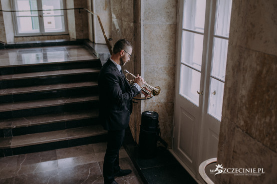 Czasami są nietypowe okoliczności, jak wtedy, kiedy Michał Koniarski grał fanfarę przy okazji uroczystego odsłaniania niektórych tablic na szlaku „Kamienice Szczecina”.