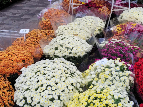 – Największym zainteresowaniem cieszy się chryzantema „Casablanca”, czyli taka kolorowa, odporna na mróz i wiatr – mówi nam ekspedientka z jednego ze stoisk. – Ceny nie wzrosły, ale ludzi nie ma zbyt wielu. Dyskonty oferują promocje i ludzie tam kupują. U mnie ceny są takie, jak w dużych marketach.