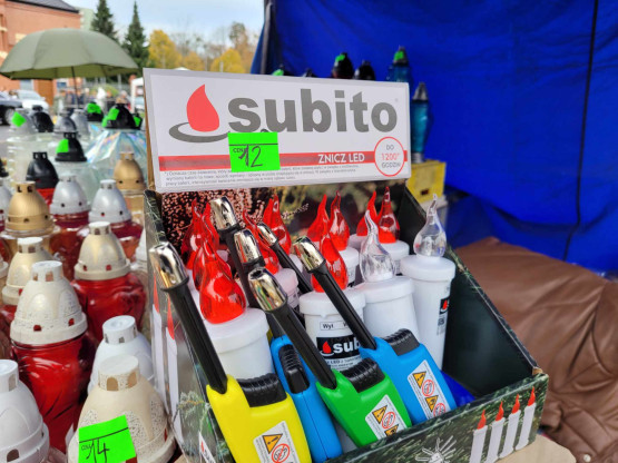 – Ludzie chcą prostych zniczy z wkładami. Czasem szukają takich trochę większych, z jakimiś błyskotkami czy złamanym szkłem – mówi jedna z ekspedientek. – Pytają o znicze elektryczne i LED-owe. W weekend sprzedałam ich cały karton – dodaje inna kobieta. – Palą się ładnie, a kosztują 10, 12 albo 15 złotych.