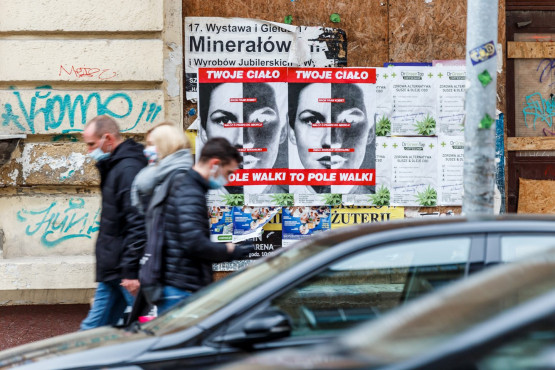 Trafostacja Sztuki w ramach komentarza do wyroku Trybunału Konstytucyjnego zakazującego aborcji w przypadku nieodwracalnych wad płodu, postanowiła przypomnieć i umieścić na ulicach naszego miasta plakaty przedstawiające reprodukcję słynnego działa Barbary Kruger „Twoje ciało to pole walki”. Poprzez połączenie krótkiego i czytelnego hasła z sugestywnym obrazem – zastosowanie metody znanej ze świata reklamy – przyciąga uwagę odbiorcy, zwracając uwagę na najważniejsze kwestie. Krytyka wyobrażeń na temat ról społecznych kobiety łączy się z zagadnieniem kształtowania tożsamości kobiet w sprzeciwie wobec patriarchalnych schematów.