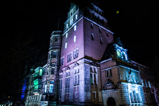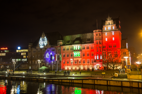 Na zakończenie dnia otwartego w szczecińskiej Izbie Celnej odbył się pokaz oświetlenia zabytkowego gmachu.