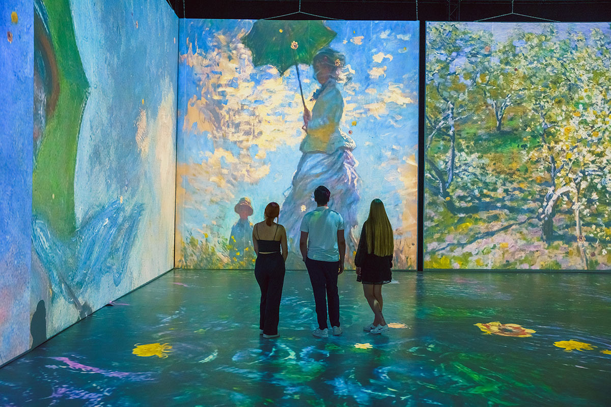 Kulminacyjnym punktem wystawy jest immersyjny spektakl, w którym setki dzieł otaczają widza ze wszystkich stron – na ścianach, podłodze i kolumnach. W jednej, wspólnej przestrzeni prezentowane są dwa następujące po sobie pokazy: widzowie zanurzają się w złotym, ornamentalnym świecie Gustava Klimta, a następnie płynnie przechodzą do impresjonistycznych pejzaży Claude Moneta i jego artystycznych przyjaciół, takich jak Pierre-Auguste Renoir, Vincent van Gogh, Edgar Degas, Paul Gauguin, Henri Rousseau, Henri de Toulouse-Lautrec, czy Paul Signac. Każda z projekcji tworzy własną, spójną narrację wizualną, dopełnioną starannie dobraną warstwą dźwiękową – muzyką Zbigniewa Preisnera w części Klimta oraz kompozycjami inspirowanymi epoką w części Moneta i jego przyjaciół.