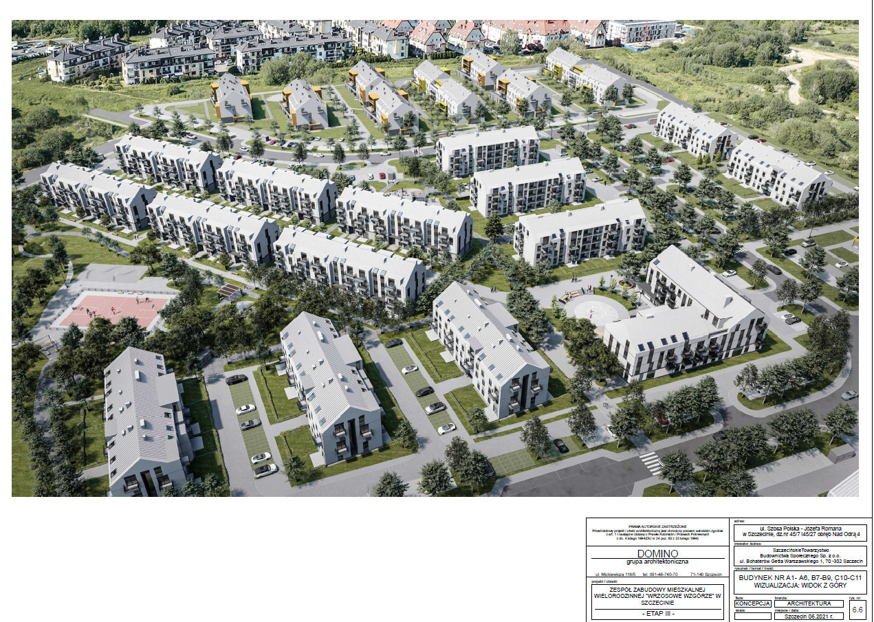 Projekt osiedla został wybrany w konkursie architektonicznym. Wygrała go pracownia DOMINO Grupa Architektoniczna Wojciecha Dunaja z siedzibą w Szczecinie.