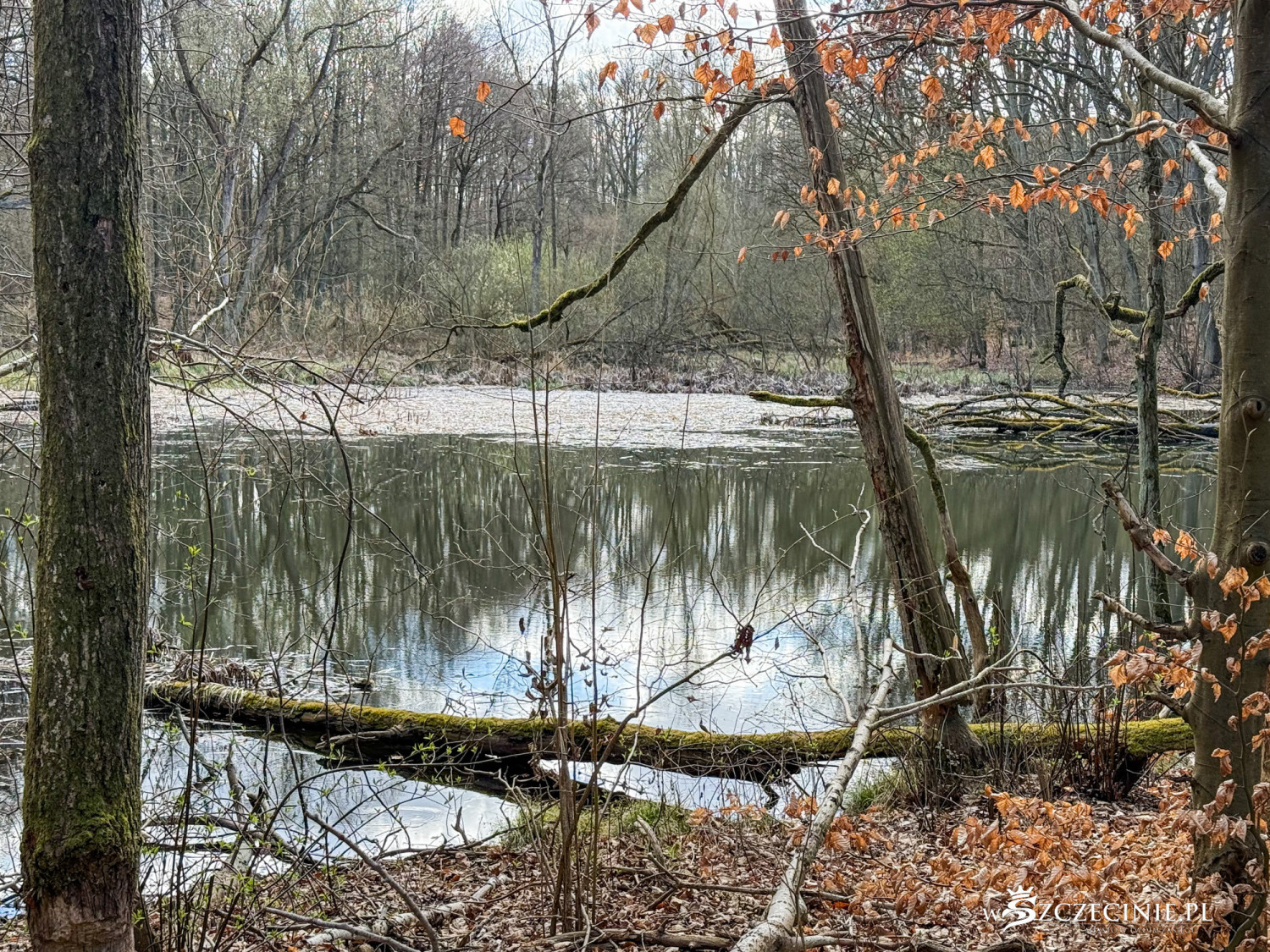 Ostatnim punktem na trasie spaceru jest niewielki staw w okolicach Wilczego Bagna.
