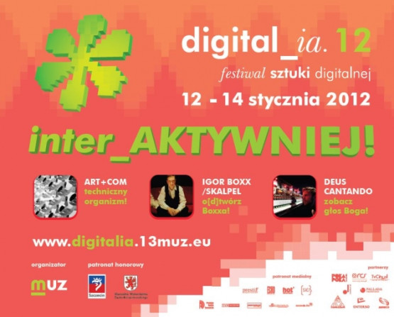 Słowo które określa charakter kolejnej czwartej już odsłony festiwalu digital_ia to: interaktywność. Rzeczywistość i sztuka stale wywierają na siebie obopólny wpływ: odbierają nawzajem komunikaty i odpowiadają na nie. Stają się tym samym doskonale interaktywne. Tak było zawsze jednak pod wpływem najnowszych technologii interaktywność nabiera jeszcze innego cyfrowego znaczenia. Jej sens staje się dosłowny. - pisze na oficjalnej stronie festiwalu Rafał Roguszka, producent artystyczny i dyrektor 13 Muz.