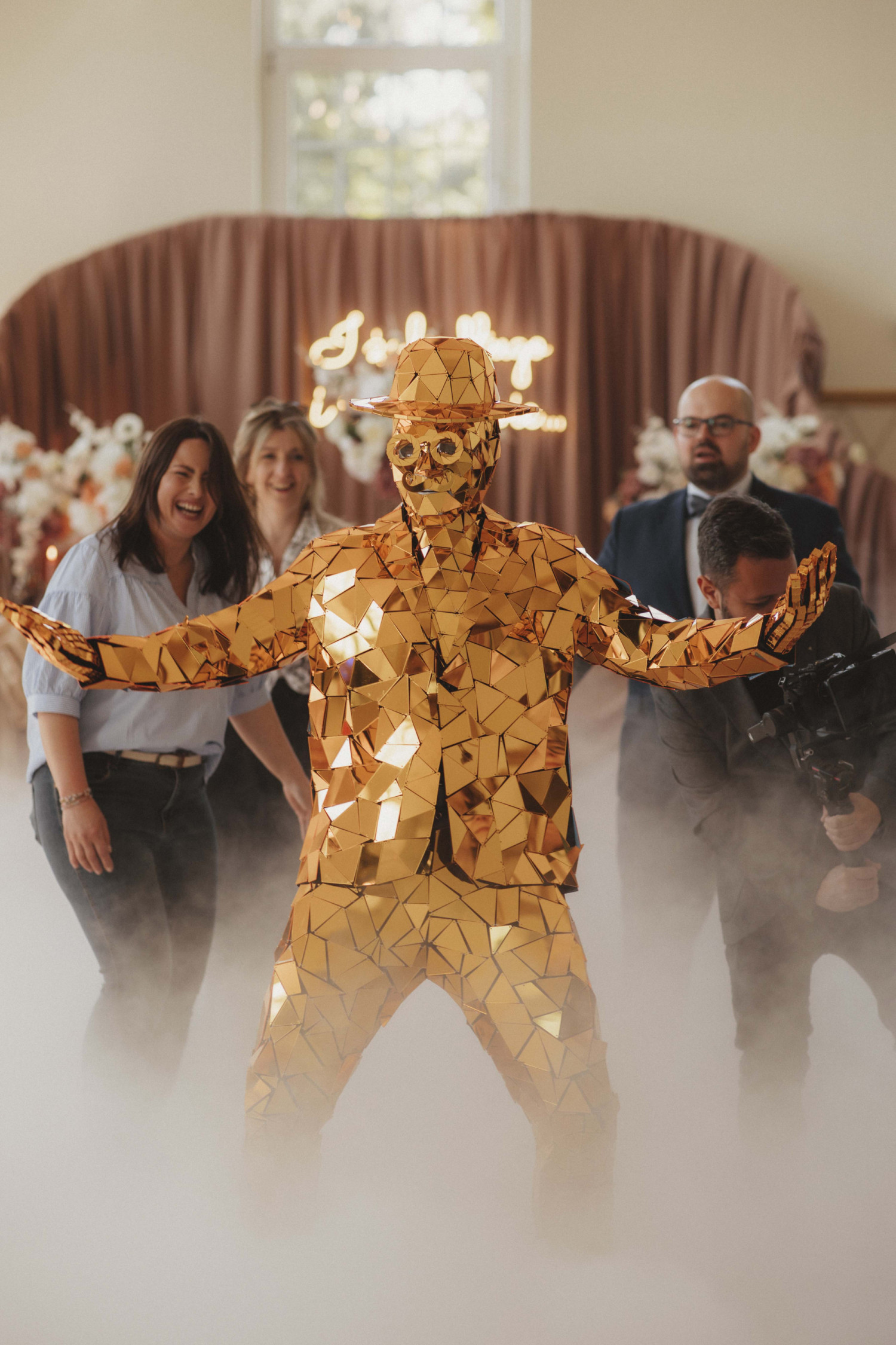 Tego dnia wesele i nie tylko można było zaplanować od A do Z - zaczynając od wyboru sukien ślubnych prezentowanych przez modelki po konsultacje z florystką. Sporą publiczność zebrał „Złoty Człowiek”, który zachęcał gości do wspólnej zabawy. Za lustrzanym, złotym strojem kryje się artysta, który podczas uroczystości zapewni nie tylko efektowne zdjęcia, ale zadba przede wszystkim o dobre nastroje gości.