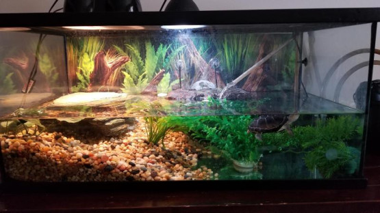 Żółw wodny uwielbia pływać i może dorastać do 30 centymetrów długości, należy więc odpowiednio dostosować rozmiar i układ akwarium. Powierzchnia wody powinna stanowić co najmniej połowę całkowitej powierzchni akwarium, a woda powinna być dostatecznie głęboka, aby żółwie mogły w niej swobodnie pływać. Im więcej żółwi trzymasz w akwarium, tym większe powinno być akwarium.